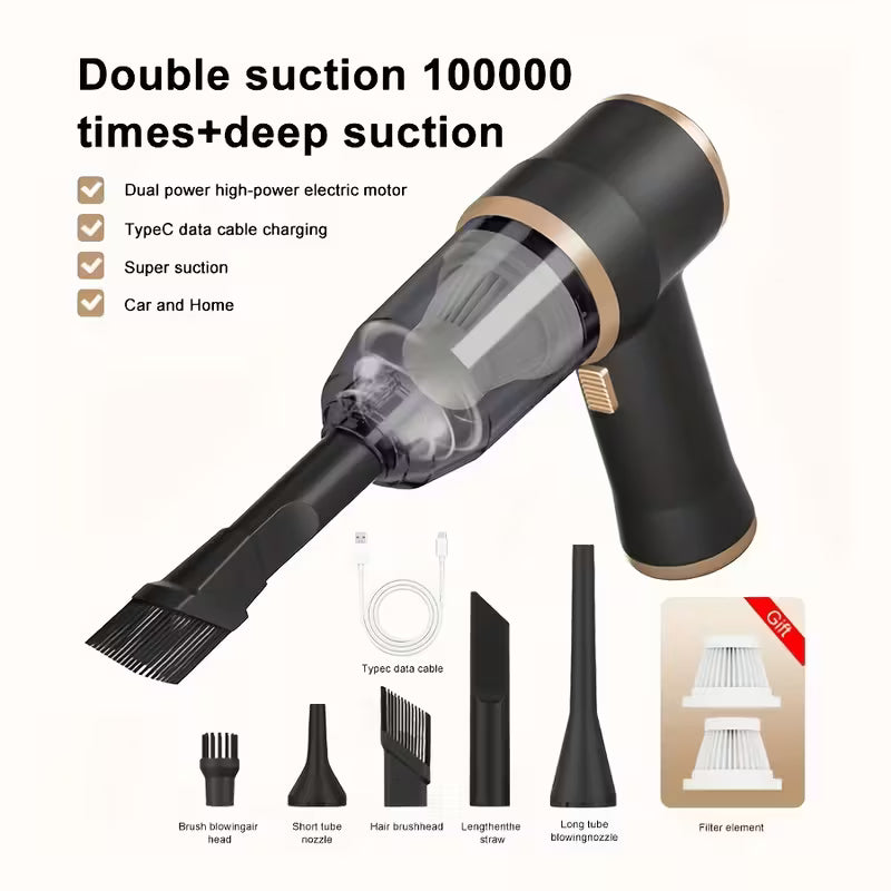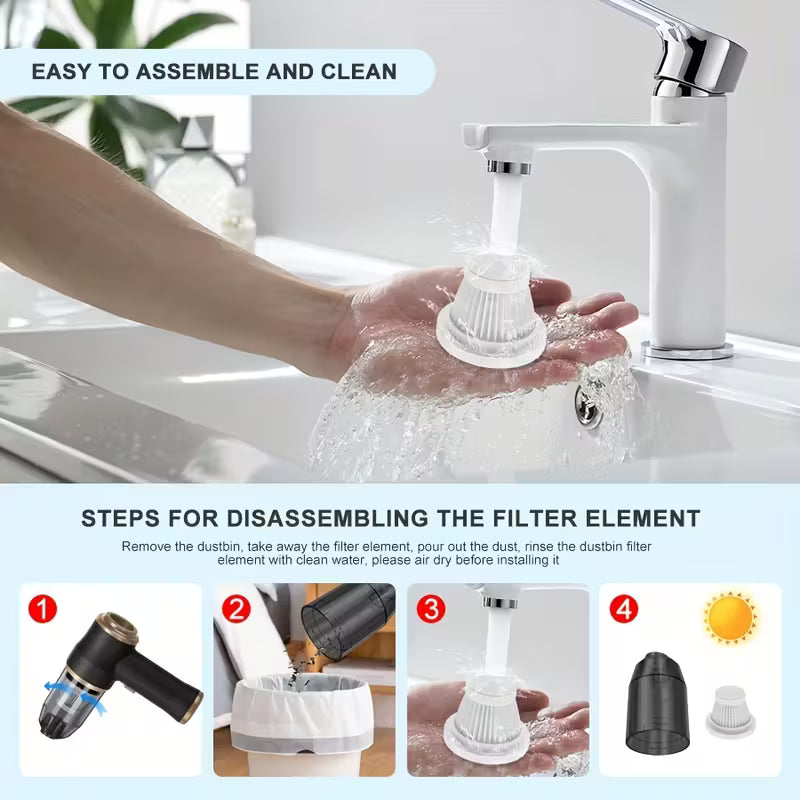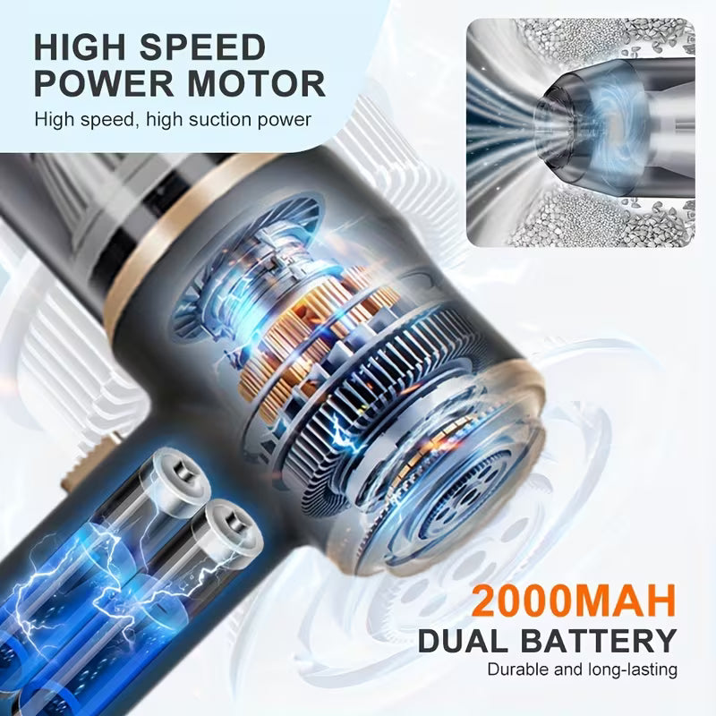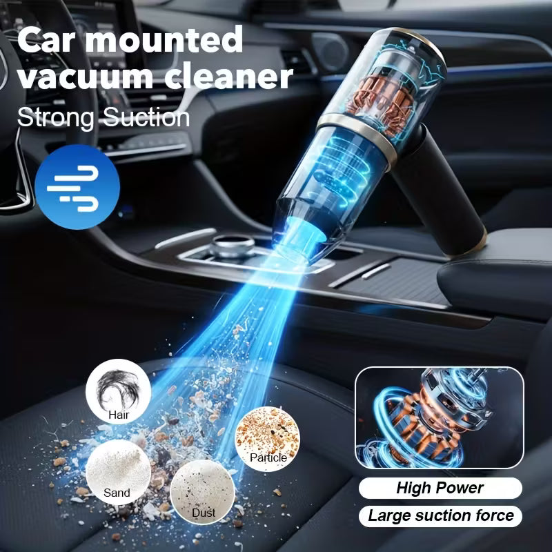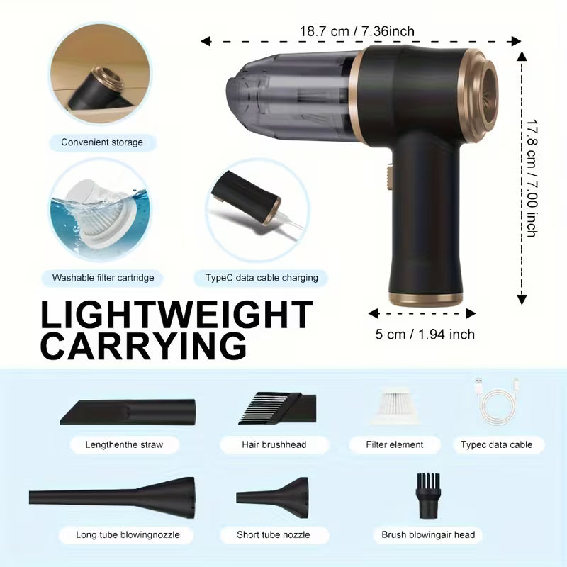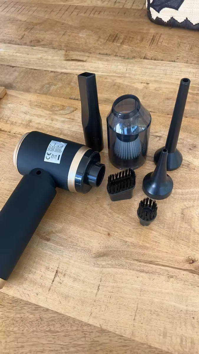 L'aspirazione ad alta potenza rimuove facilmente briciole, polvere fine, sabbia, capelli e persino peli di animali domestici, anche negli angoli più difficili dell'auto, del divano o del tappeto.